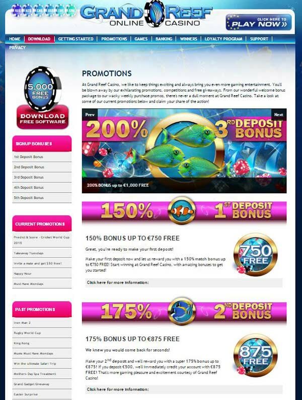 Grand Reef casino has done a very good job in effectively showing their promotions and bonuses by giving clear details on how their promotions work; something that is hard to find in many other online casinos today.